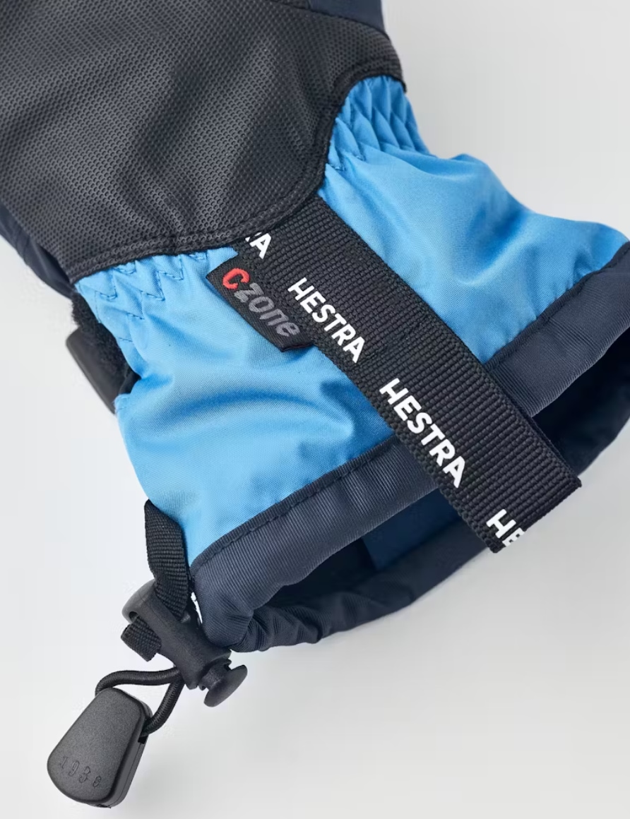 Hestra Gauntlet CZone Jr. 5-finger er en supergod, varm og både vind- og vanntett hanske for barn – en av Hestras mest populære modeller til junior. Den perfekte hansken for ski, lek og moro gjennom hele vinteren.