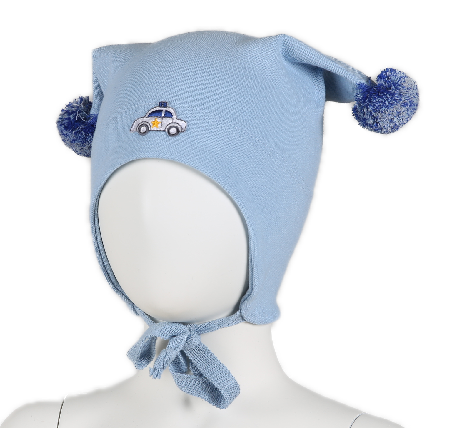 Kivat lue med bil har to dusker og motiv som appellerer til barn. Materialet består av 97 % økologisk bomull og 3 % elastan, som gir stretch og slitestyrke.