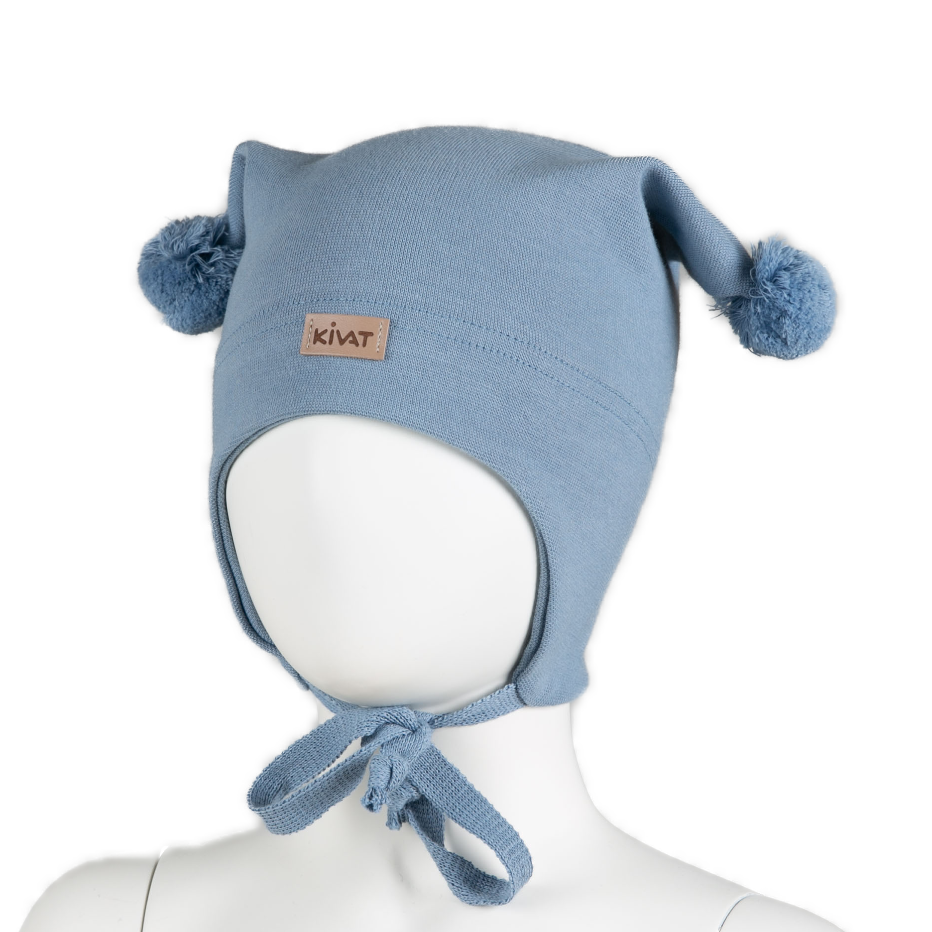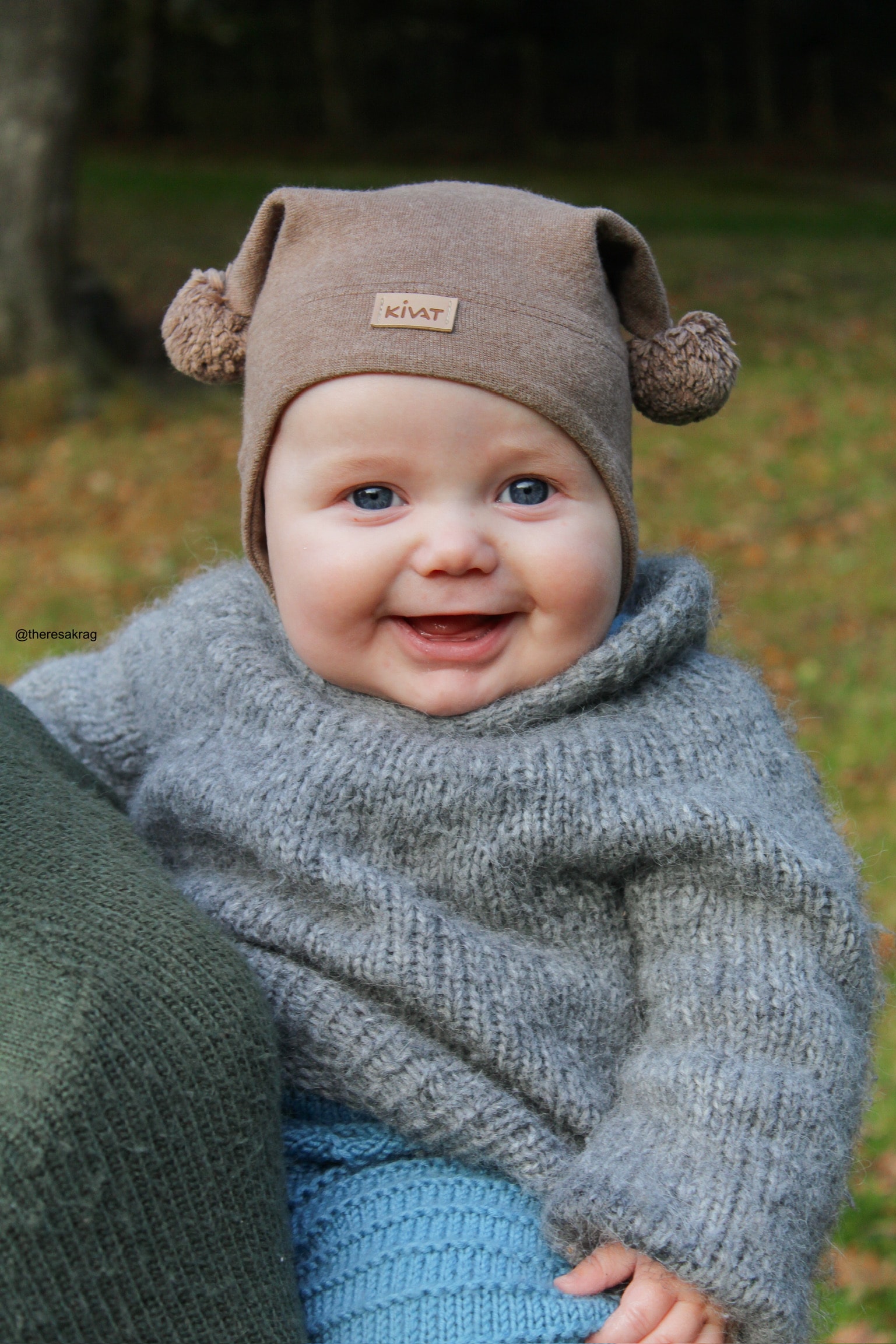 Luen har vindstopper over ørene som skjermer mot kald vind. Knytestropper holder luen på plass under lek. Materialet er pustende og behagelig mot huden.