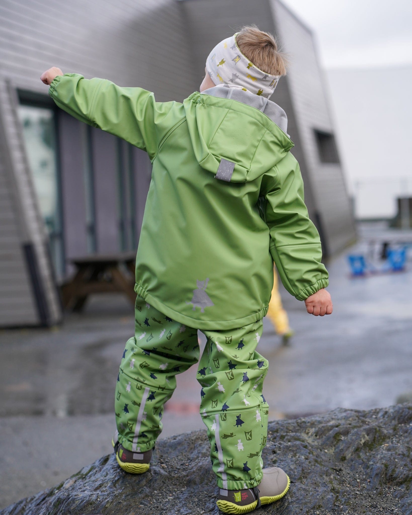 Kattnakken sitt regntøy er printet for hånd, og det kan derfor forekomme små variasjoner i printet. Dette påvirker ikke kvaliteten i regntøystoffet.