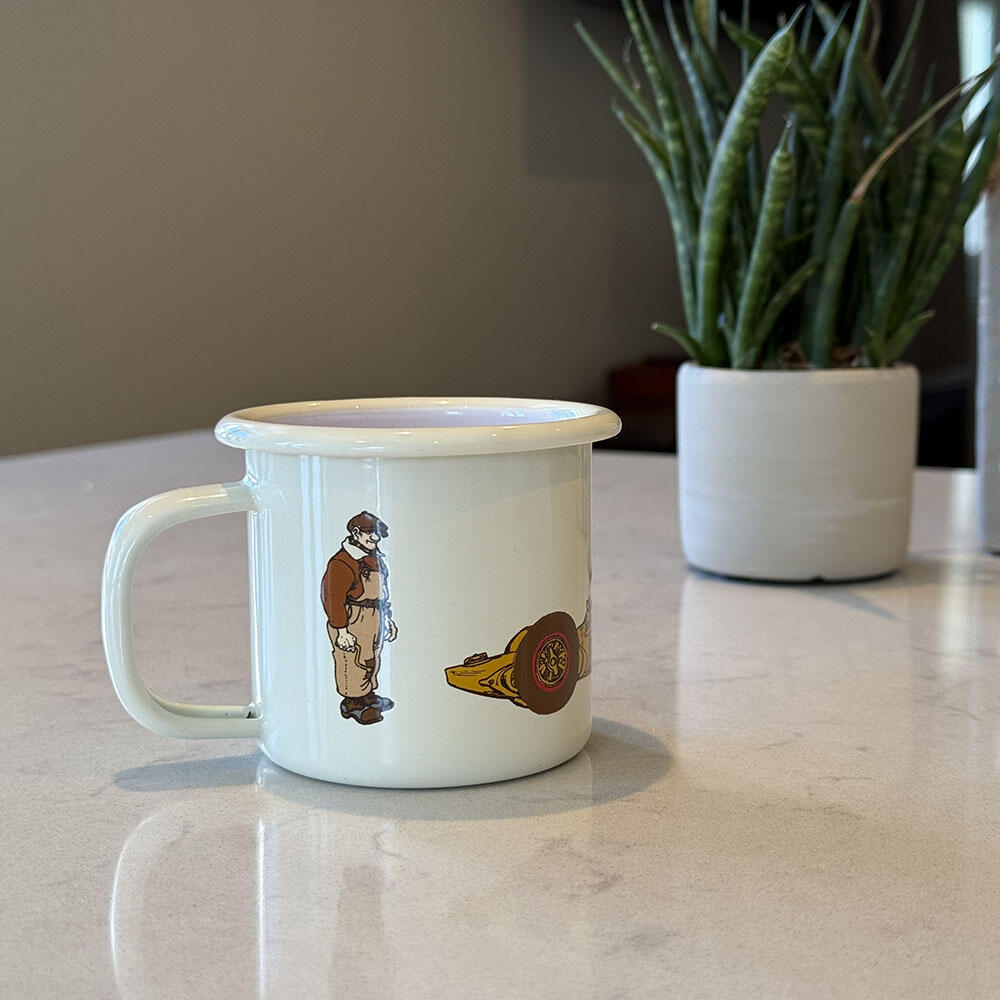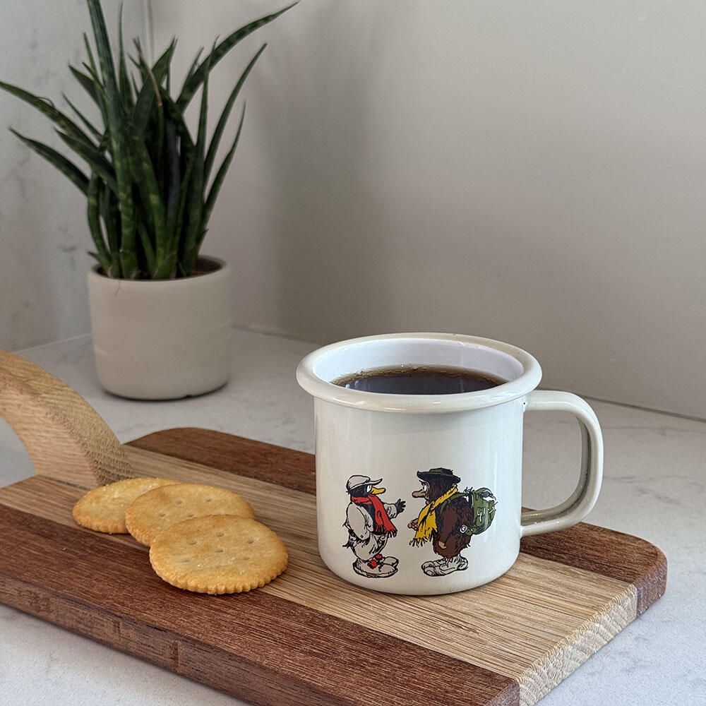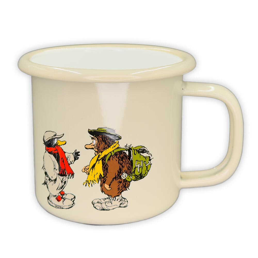 Flåklypa Emaljekopp - Start dagen med et smil og et snev av nostalgi! Denne sjarmerende emaljekoppen med motiv fra Flåklypa lar deg nyte kaffen, teen eller kakaoen sammen med Ludvig og Solan.