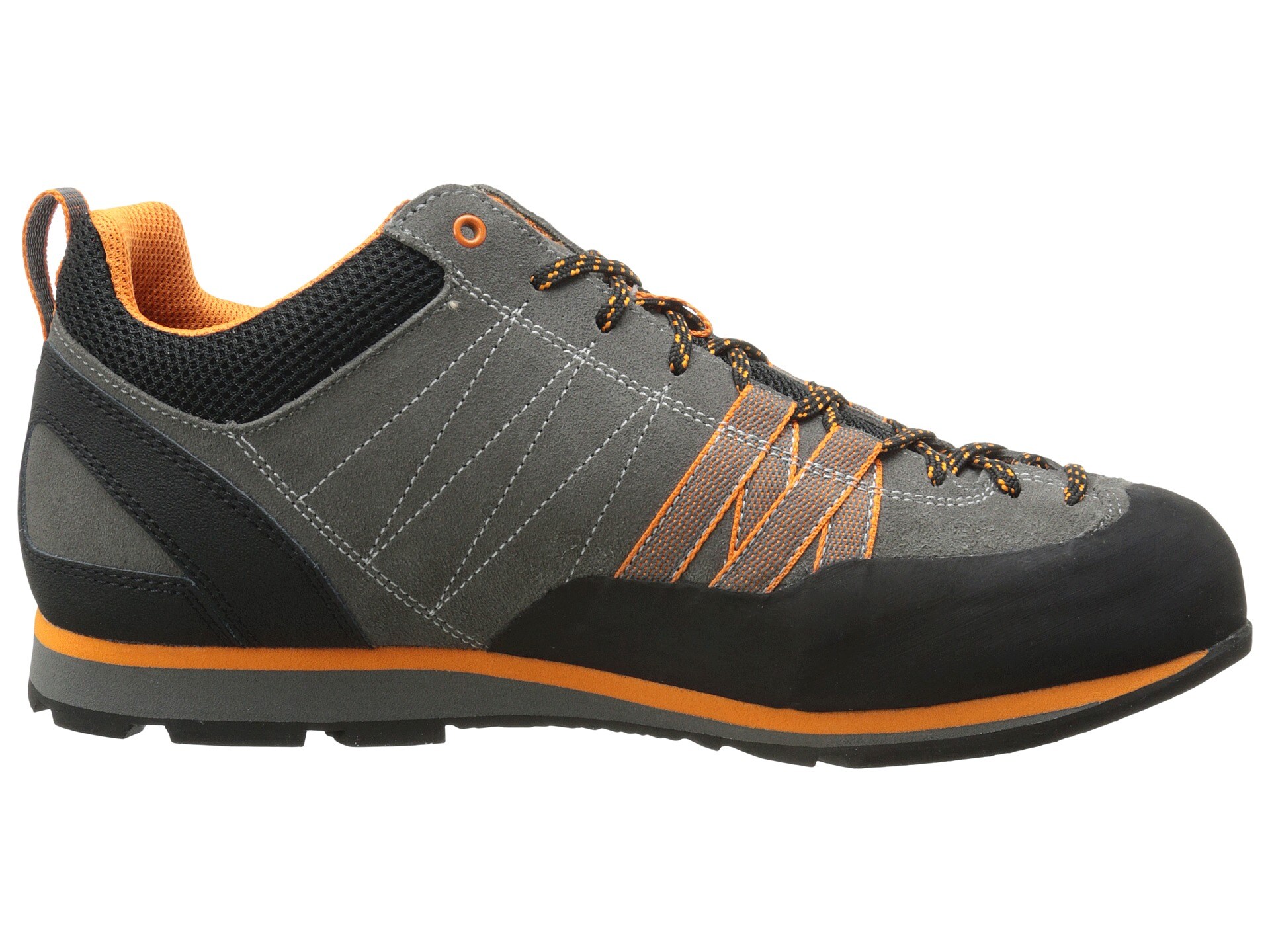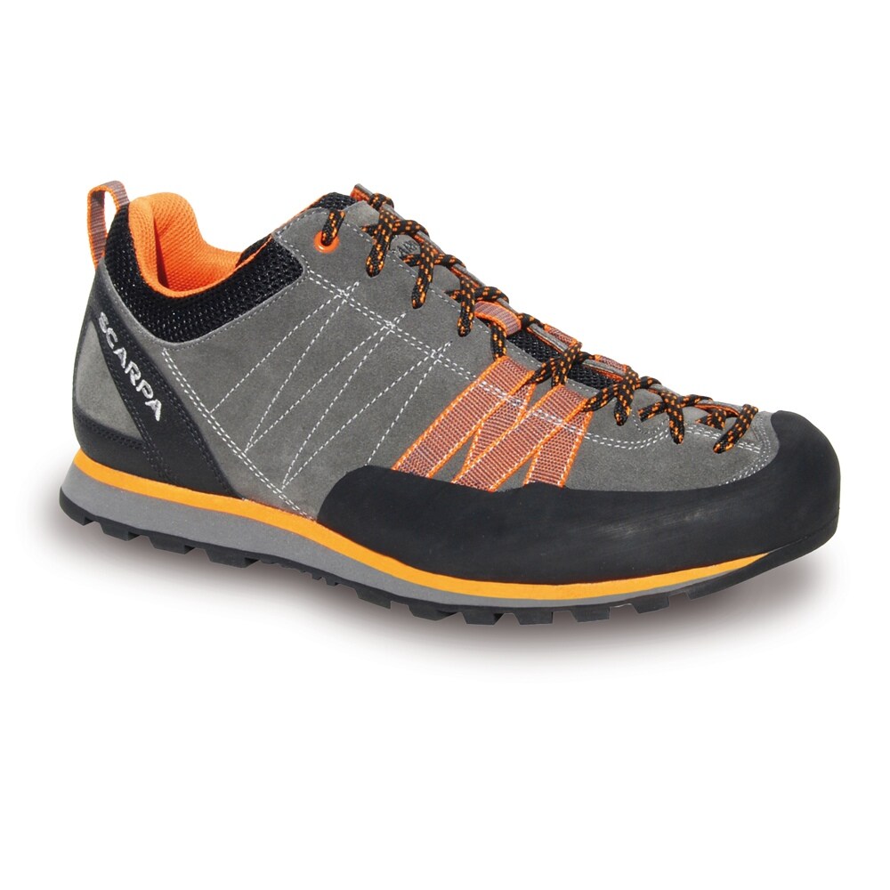 Crux er en glimrende anmarsj sko som er god for steinete underlag og moderat klatring. Skoen har gummibelagt beskyttelse for tærne for ekstra slitestyrke. Skoen har et solid såle av typen Vibram® Vertikal Approach for komfort og støtte.