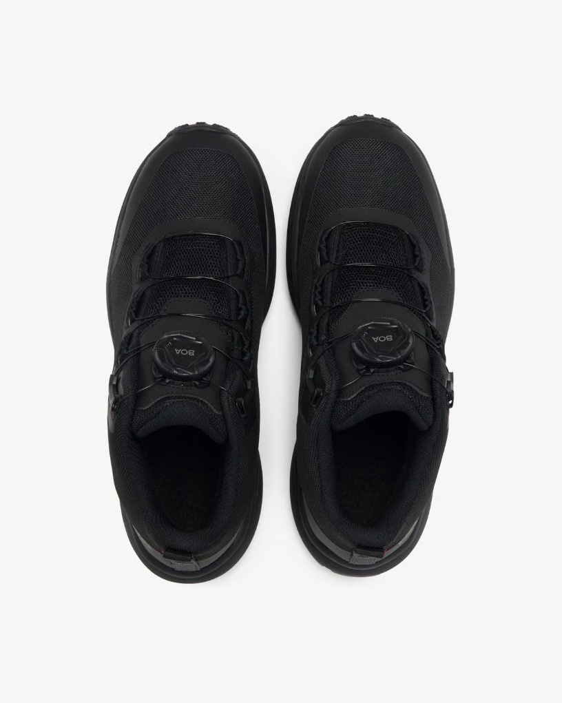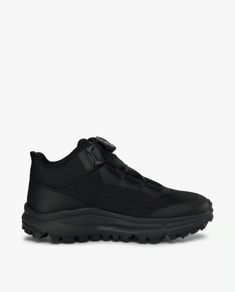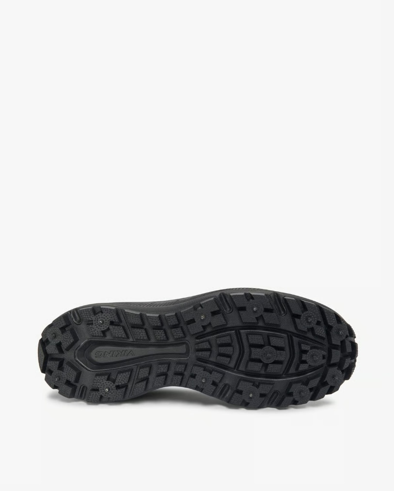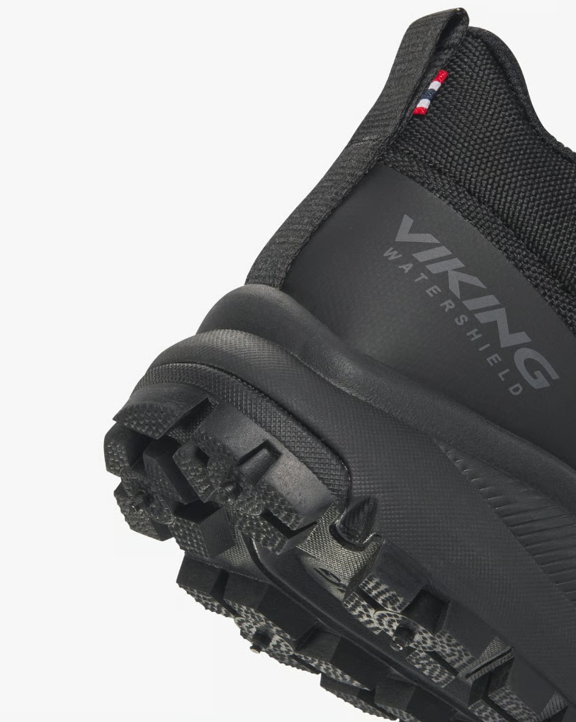 Den mellomhøye overdelen i mesh gir stabilitet, mens slitesterke forsterkninger i tå og hæl beskytter mot slag og slitasje. BOA® Fit System sørger for perfekt passform med mikrojustering – selv med hansker på. Vikings egen Watershield-membran holder føttene tørre i regn, sludd og snø, og det varme fôret gjør skoen behagelig selv i sprengkulde.