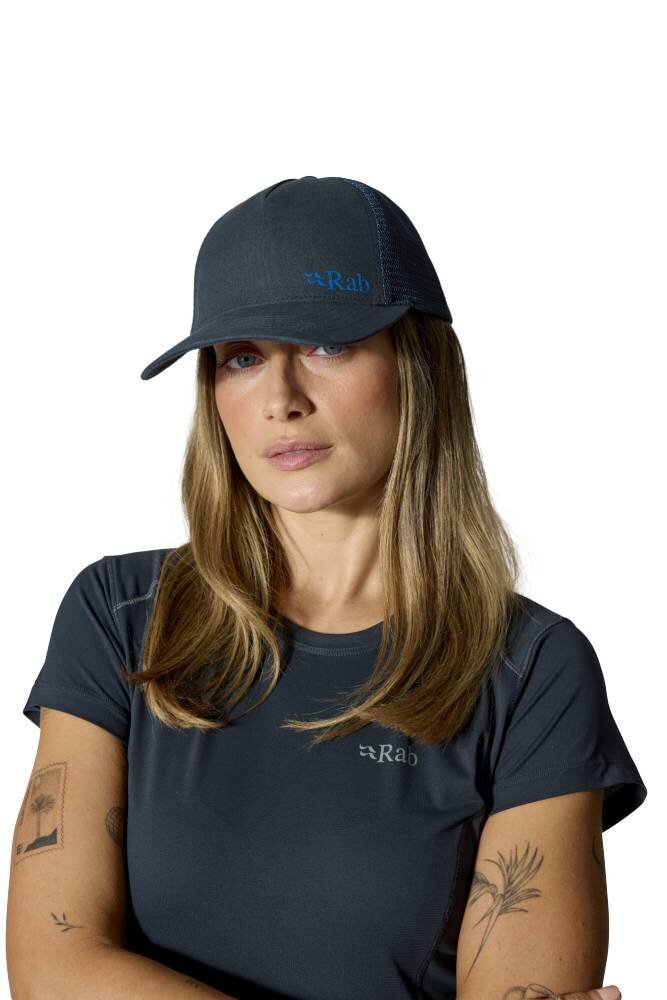 RAB Trucker Logo Cap - klassisk design og maksimal ventilasjon. Capsens diskré stil og beskjedne RAB-logo vil garantert bli en ny favoritt i caps-samlingen. Den har ventilerende mesh-paneler og en enkel snapback-justering. Spesifikasjoner: Hovedmateriale: 100% Polyester Sekundær-materiale - 100% bomullskant Vekt: 67g Flat topp Snapback-lukking