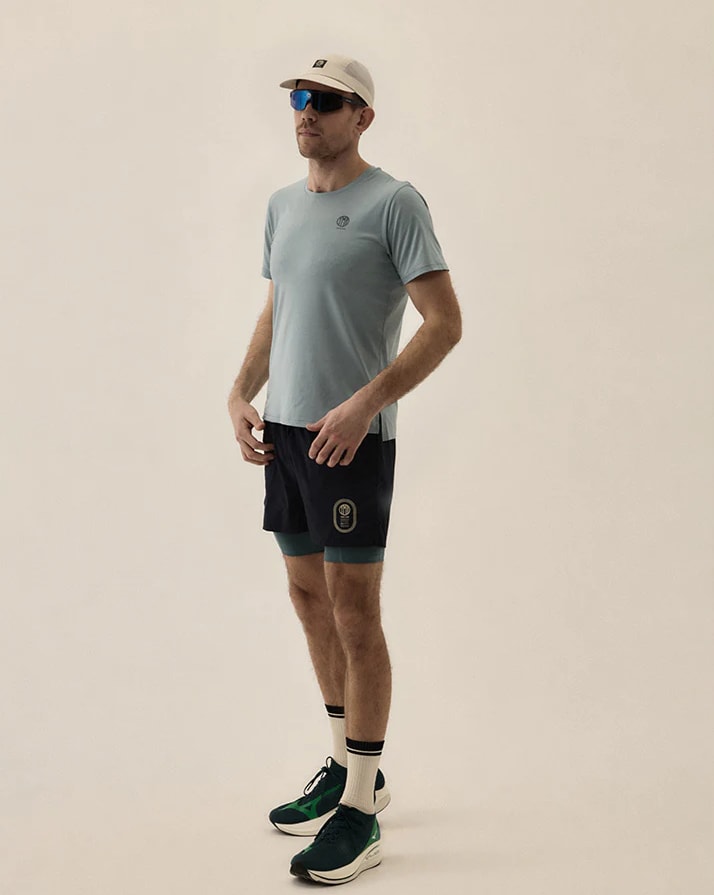 T-skjorten er laget i resirkulert polyester fra Italia. Mesh-strukturen gir lav vekt og effektiv ventilasjon. Diskré print og sidesplitt gir både funksjon og et rent uttrykk.