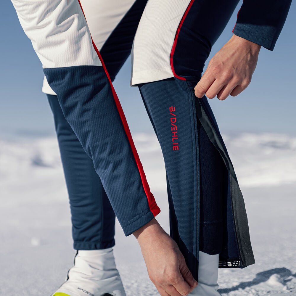 Pants Skaret er en lett langrennsbukse laget med tanke på trening med høy intensitet. Den er laget av det mest tekniske softshell-materialet du kan finne i en langrennsbukse, har en fantastisk bevegelsesfrihet og tørker raskere enn andre softshell-bukser. Det vind- og vanntette stoffet beskytter godt mot vær og vind i front, mens de elastiske panelene på baksiden sørger for mobilitet og ventilasjon. Glidelås opp til knærne gjør det enkelt å ta av og på uten å ta av skistøvlene.