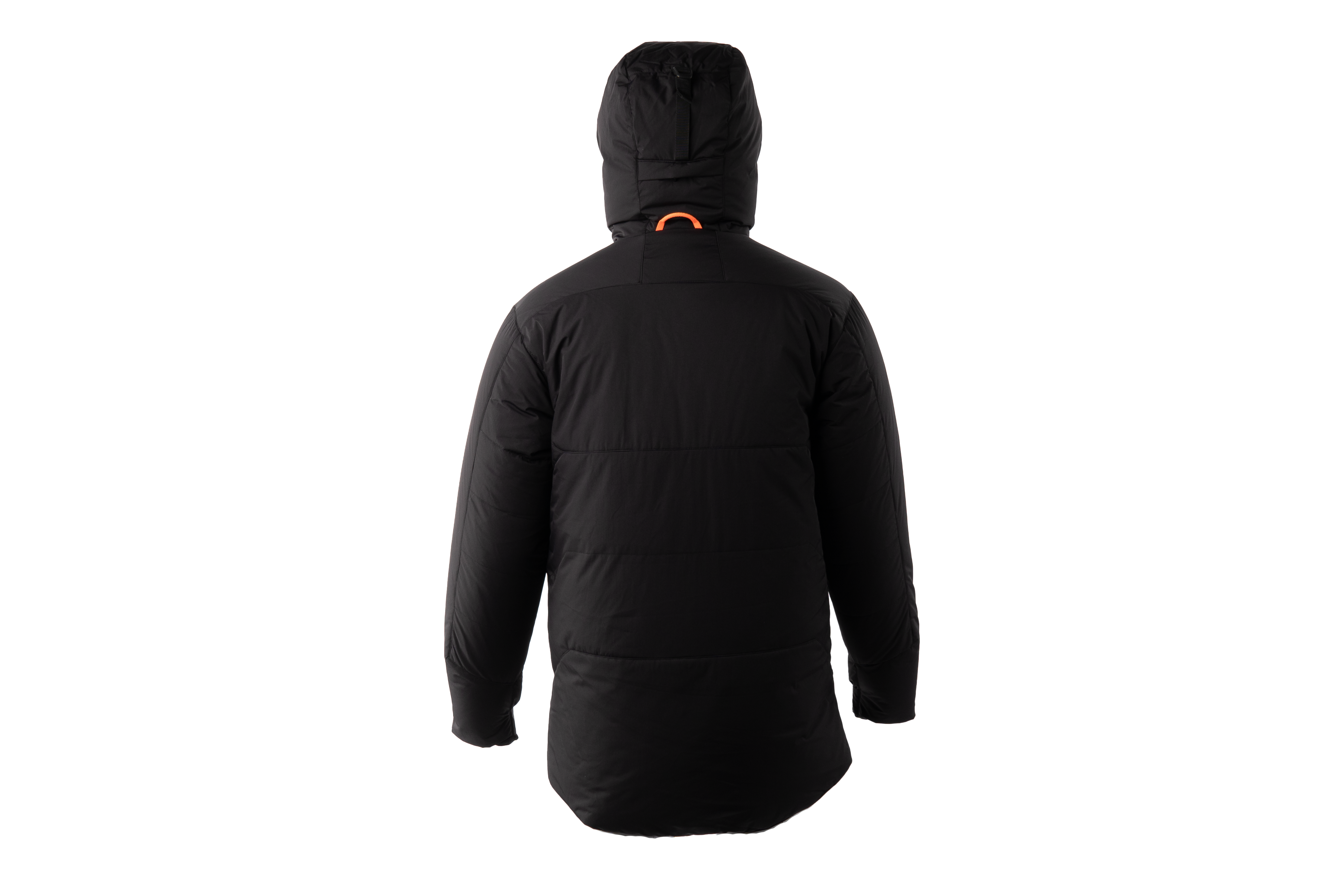 Bygget for temperaturer ned til -55°C, testet i Norge og Alaska. Jakken kombinerer 800FP gåsedun med PrimaLoft® Silver, som holder deg varm selv i våt snø og regnvær. Det slitesterke nylon-skallet tåler 10 000 mm vann, og dunfylte stormklaffer og hette gir 360° beskyttelse mot kulde og vind.