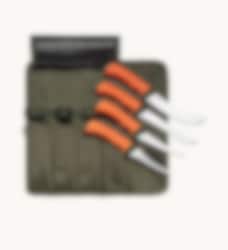 Knivene er produsert i premium knivstål og levert i en solid Cordura-map som holder utstyret samlet og beskyttet i felt.