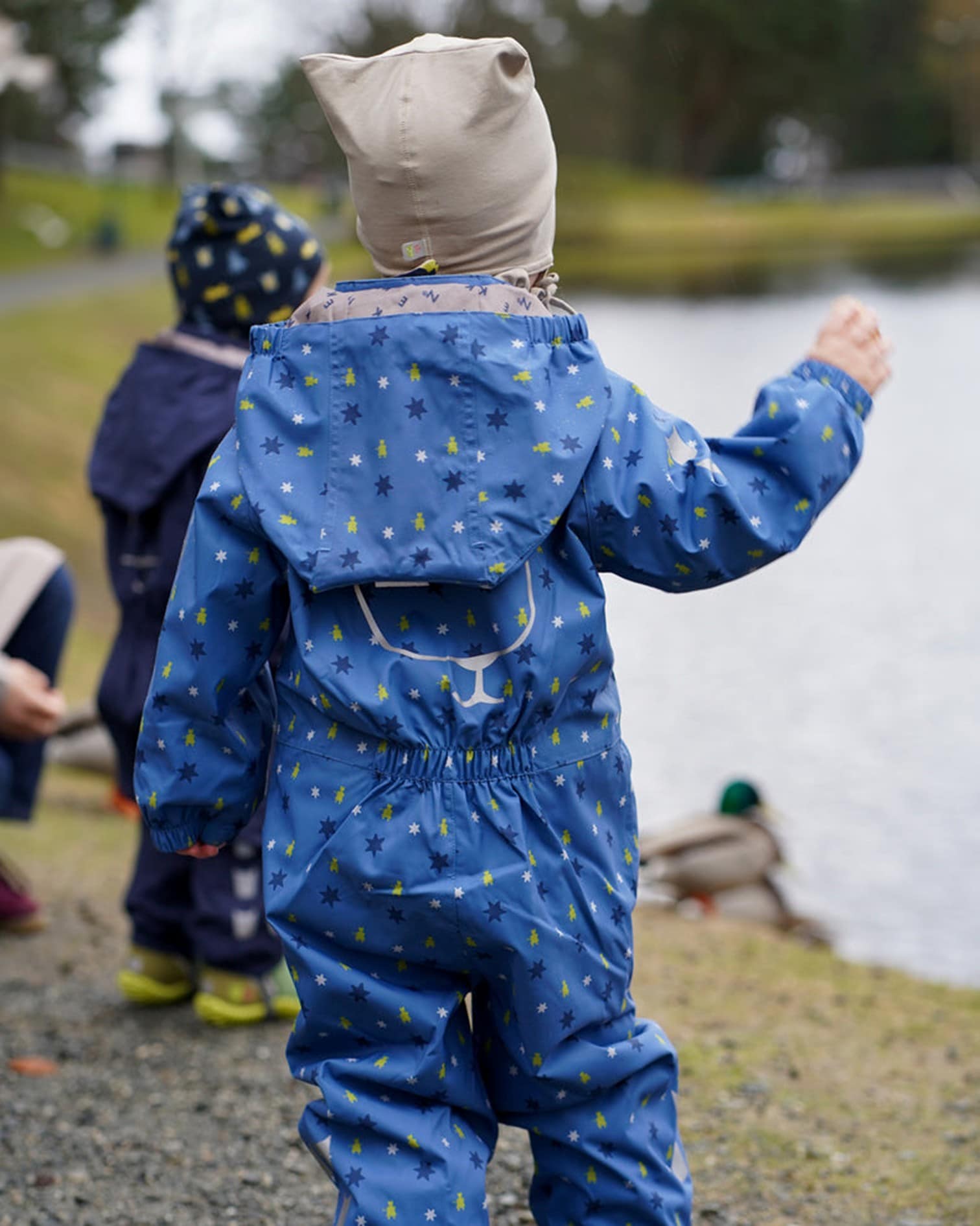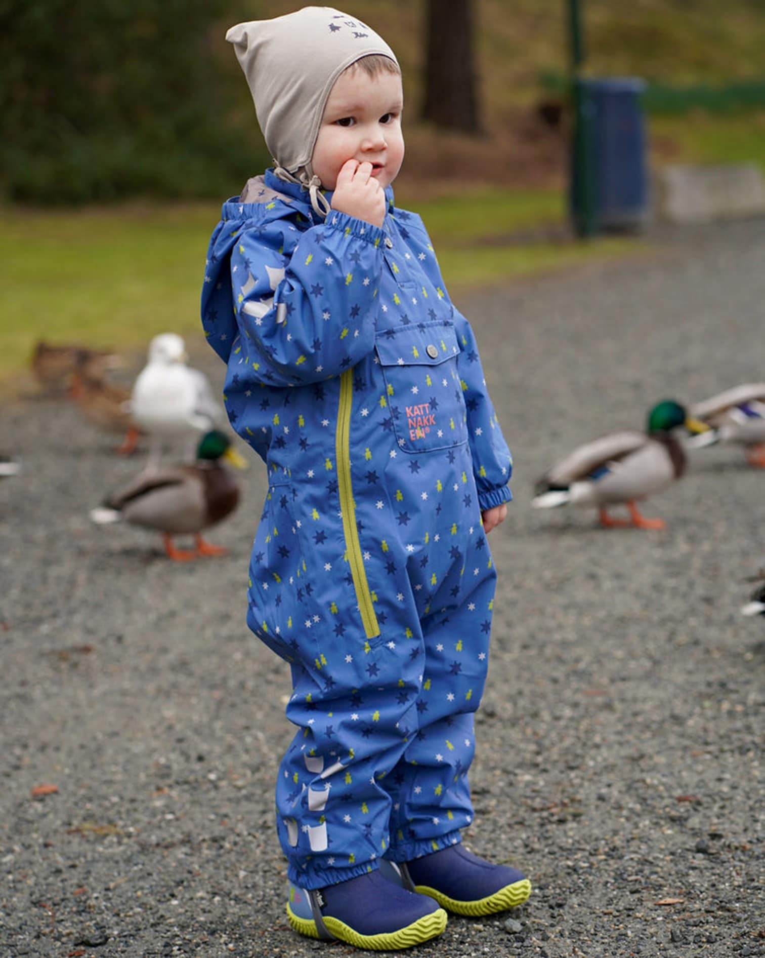 En trygg og praktisk dress for små eventyrere som vil utforske verden, uansett vær.