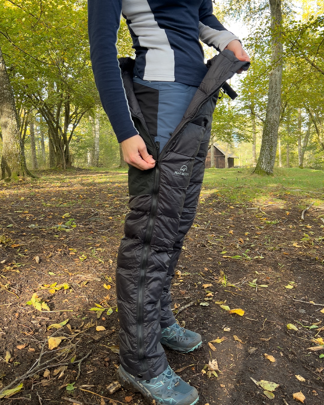 Grunnet hel glidelås på begge ben tar du på og av deg buksen på noen få sekunder - uten å måtte ta av sko osv. Veldig god passform.