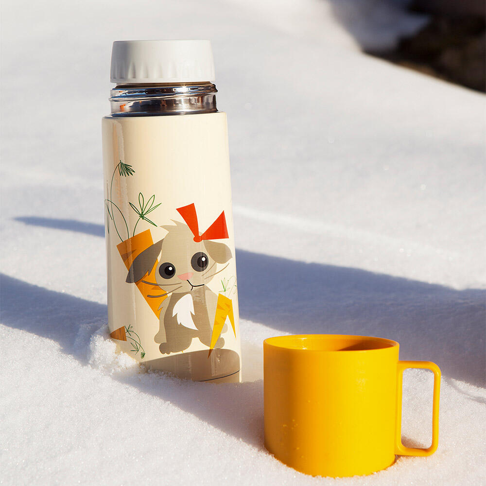 Kork og kopp er laget av helstøpt plast uten ftalater og BPA, og kan trygt vaskes i oppvaskmaskin. For å bevare mønsteret på utsiden anbefales håndvask av selve termosen. Husk å unngå koking av korken, da formen kan endres.