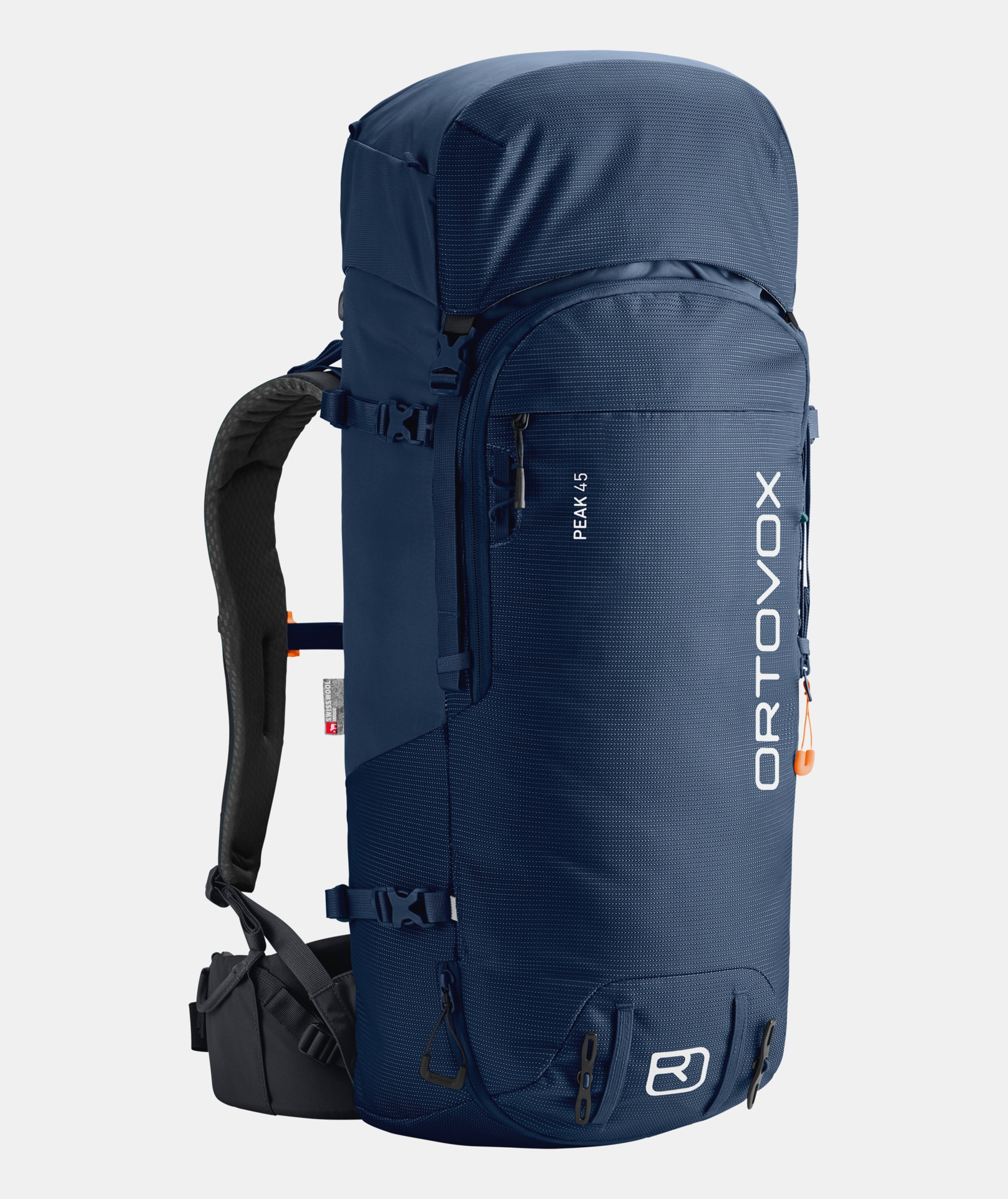 Ortovox Peak 45L er laget for de alpine turene. Sekken er utrolig robust takket være bruken av det ekstremt slitesterke materiale. De brede, polstrede skulderstroppene og hoftebeltet fordeler vekten i sekken jevnt mellom skuldrene og hoftene, og sikrer meget god bærekomfort. Peak 45L har glidelås foran som gir deg direkte tilgang til hovedrommet. I tillegg finner man et eget sikkerhetsrom, festemuligheter for tau, isøks, stegjern, ski og snowboard.