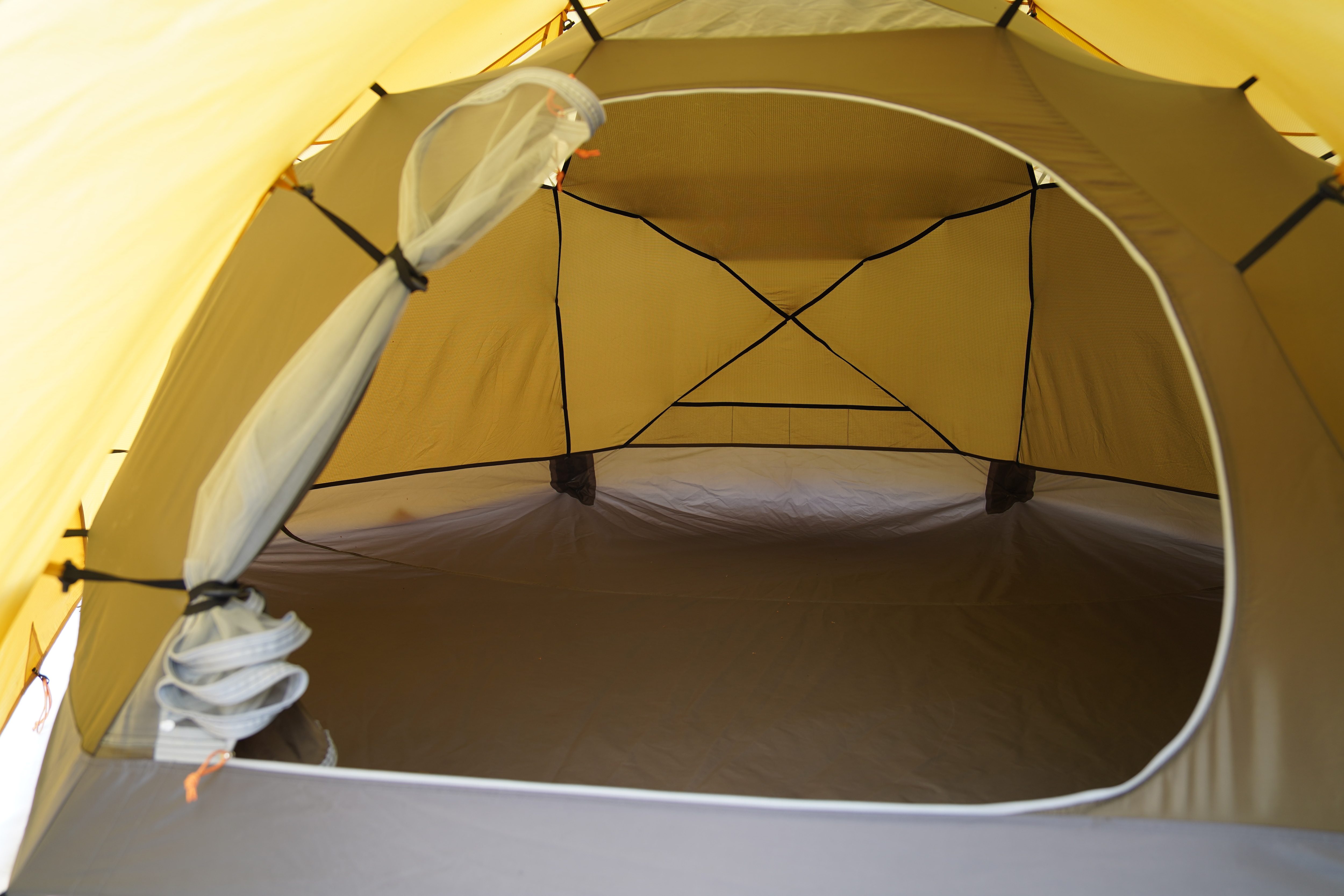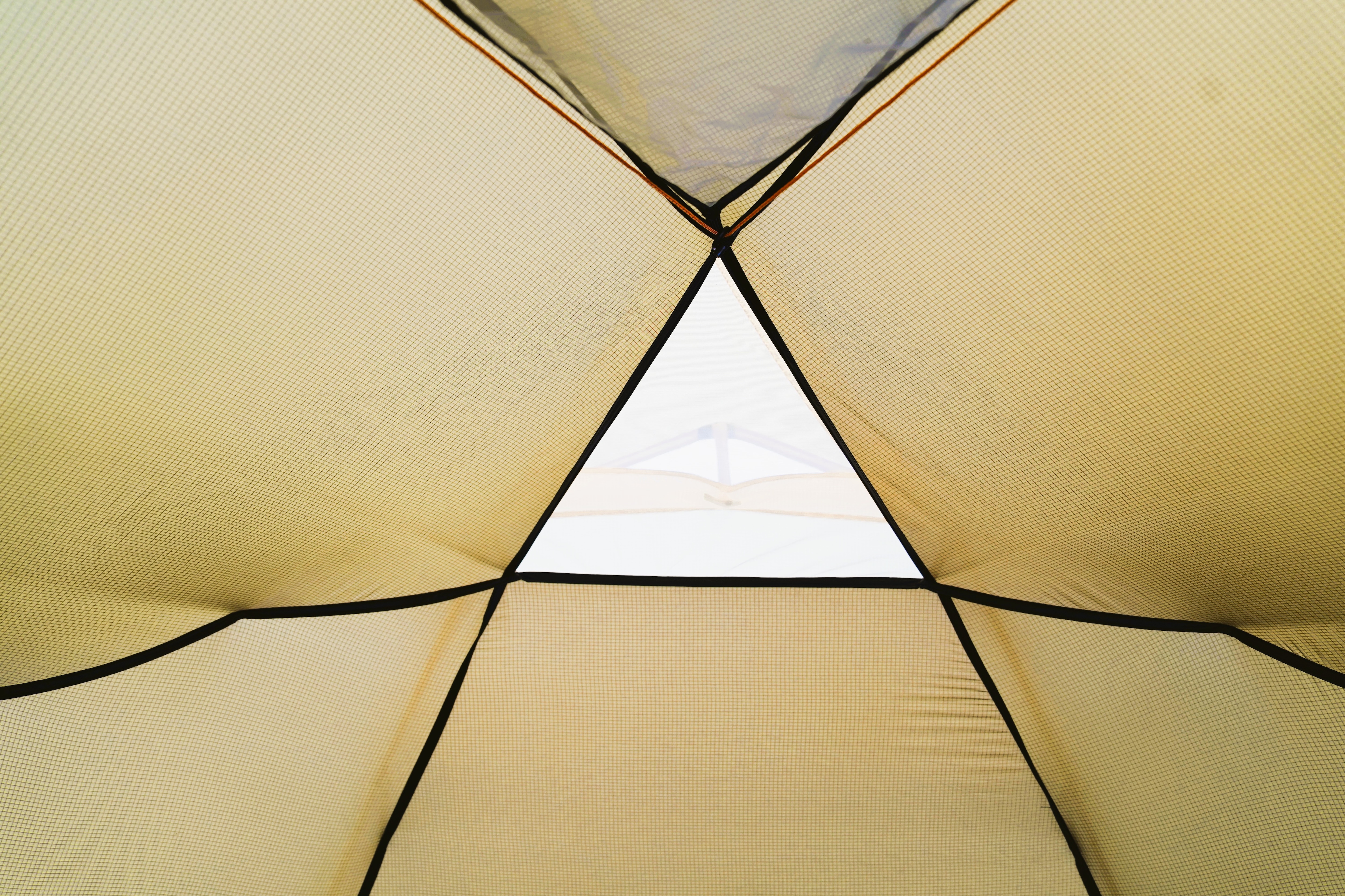 Innerteltet er laget i svært pustende Ripstop-nylon, kombinert med ventilasjonsåpninger og lukkbare ventiler i ytterteltet. Dette sørger for optimal luftgjennomstrømning og reduserer kondens selv under krevende forhold. Ytterteltet er silikonbehandlet på begge sider, slik at regn, snø, tåke og dugg holdes ute.
