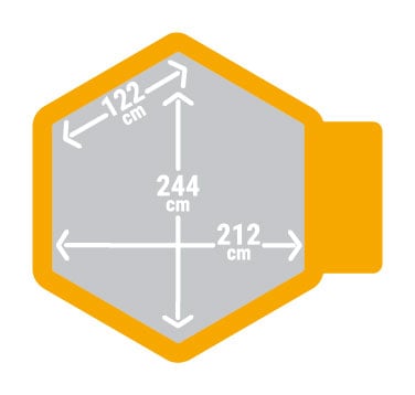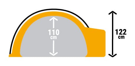 Den selvstående kuppelkonstruksjonen med seks solide aluminiumstenger gir høy styrke og stabilitet. Alle krysningspunktene er forsterket, slik at det står i selv sterk vind. Teltet leveres med sterke og solide plugger og refleksbarduner for sikker forankring.