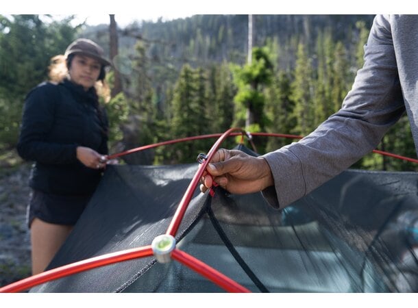 Dette teltet er designet for rask og enkel oppsetting. Den selvstående konstruksjonen gir god stabilitet og et stramt telt som ikke blafrer i vinden. Oppsettet er intuitivt: fest hjørnene, sett i stengene og klips på teltet før ytterduken legges over. Resultatet er et solid telt som gir gode soveforhold.