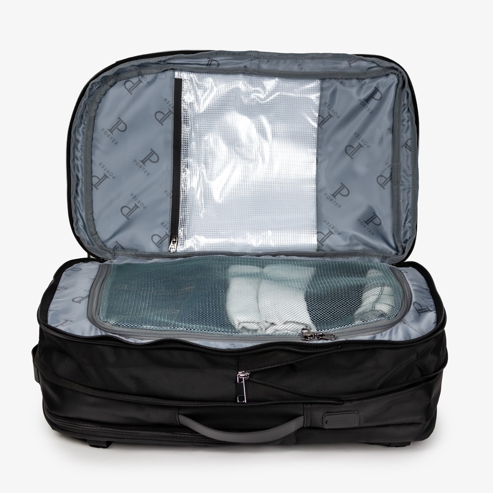 - Stort tekstilrom -åpnes som en koffer, med egen vanntett lomme for alt av flytende stoffer, justerbart med + 10 cm