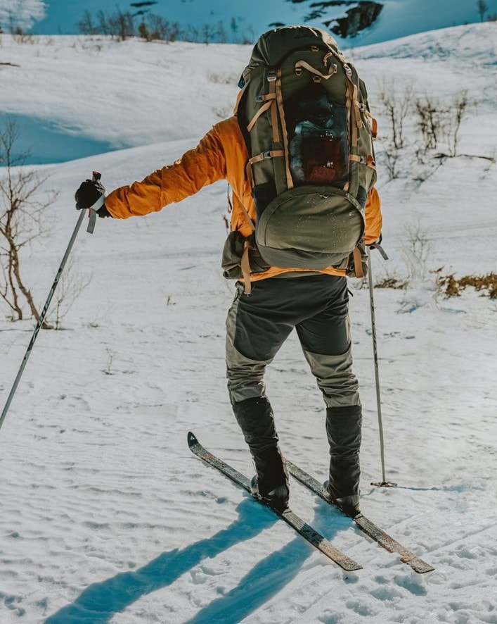- Forlengbar roll-top snølås (spindrift collar) og I-strap kompresjon