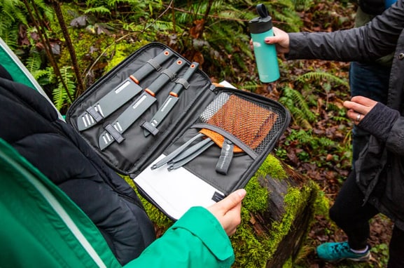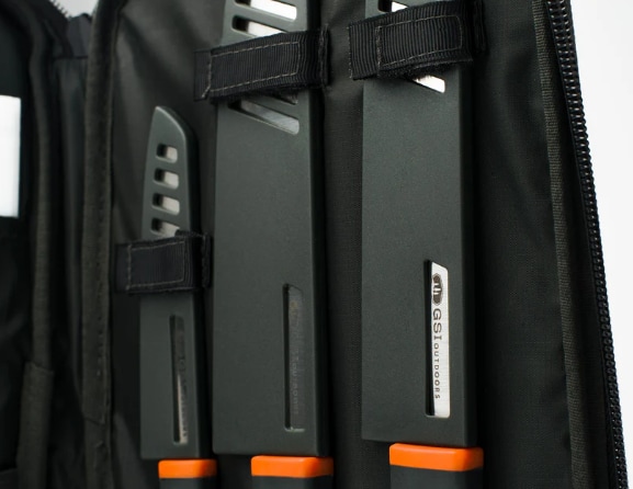 GSI Outdoors Santoku Knife Set – komplett knivsett til turkjøkkenGSI Outdoors Santoku Knife Set er et gjennomtenkt knivsett for turkjøkken, med alt du trenger til kutting og matforberedelser på tur, i camp eller på hytta.