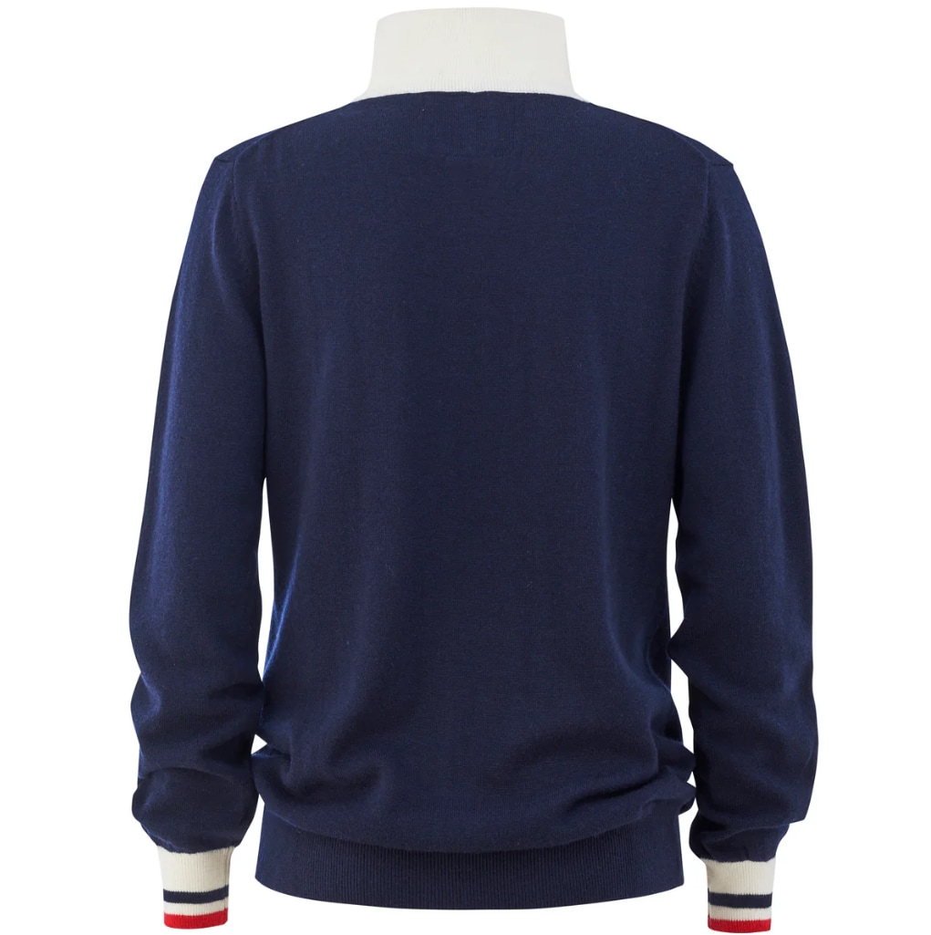 De karakteristiske franske stripene over brystet gir genseren et unikt og klassisk uttrykk. Den høye halsen med glidelås sørger for ekstra varme og fleksibilitet, enten du bruker den som et mellomlag på skitur eller som genser på kjølige dager.