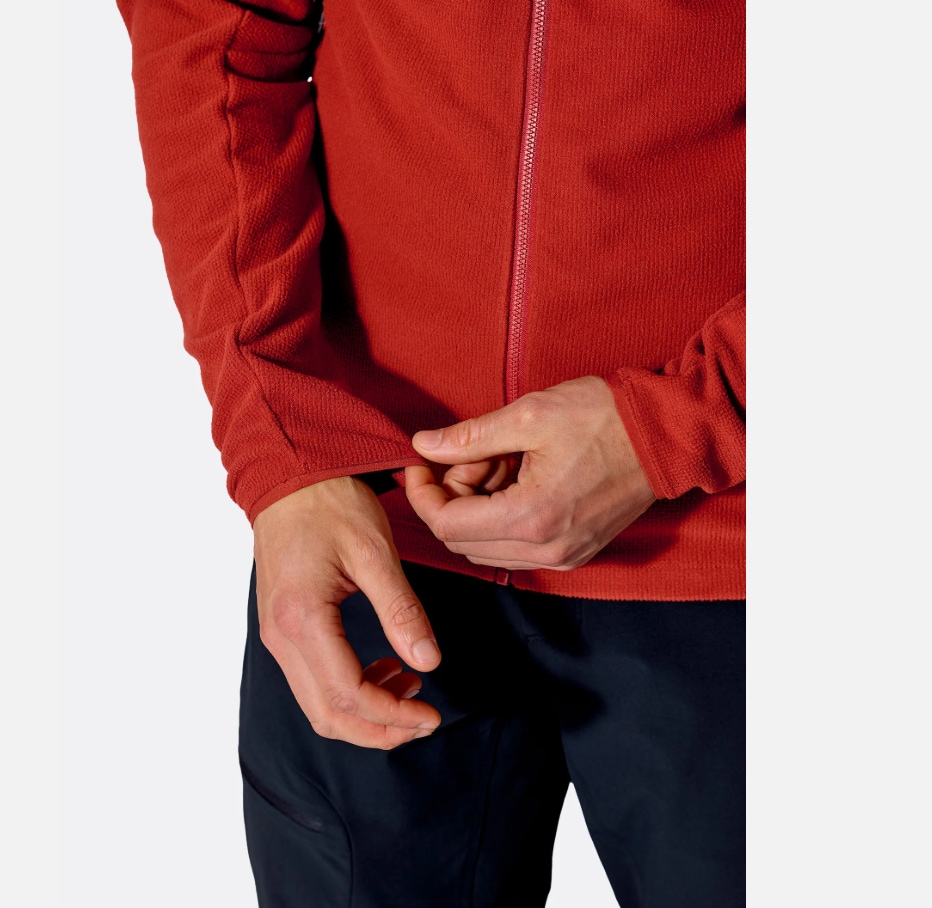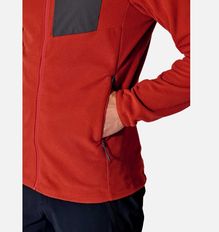 Thermic™ (180 g/m²) er et resirkulert fleecestoff med struktur som øker isolasjon uten ekstra vekt. Matrix™ softshell i brystlomme gir slitestyrke. Tettsittende hette og elastiske mansjetter gir perfekt passform.