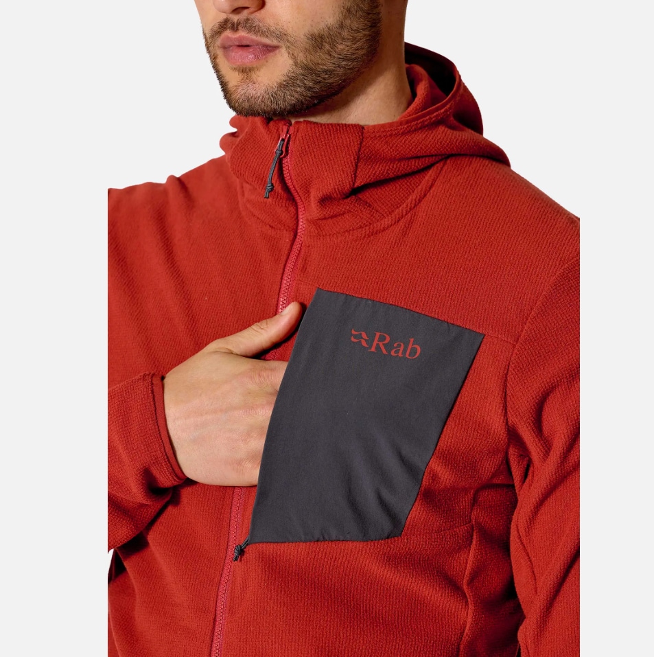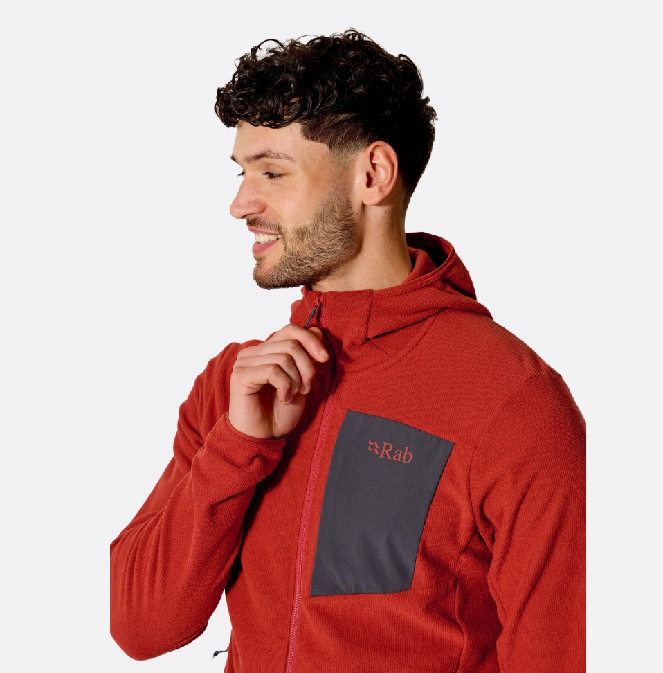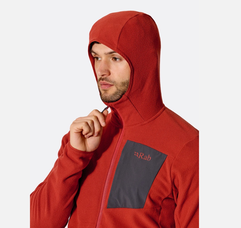 RAB Tecton Hoody er en teknisk hettegenser utviklet som mellomlag. Den kombinerer varme, pusteevne og lav vekt, og fungerer like godt alene som under skalljakke på tur.