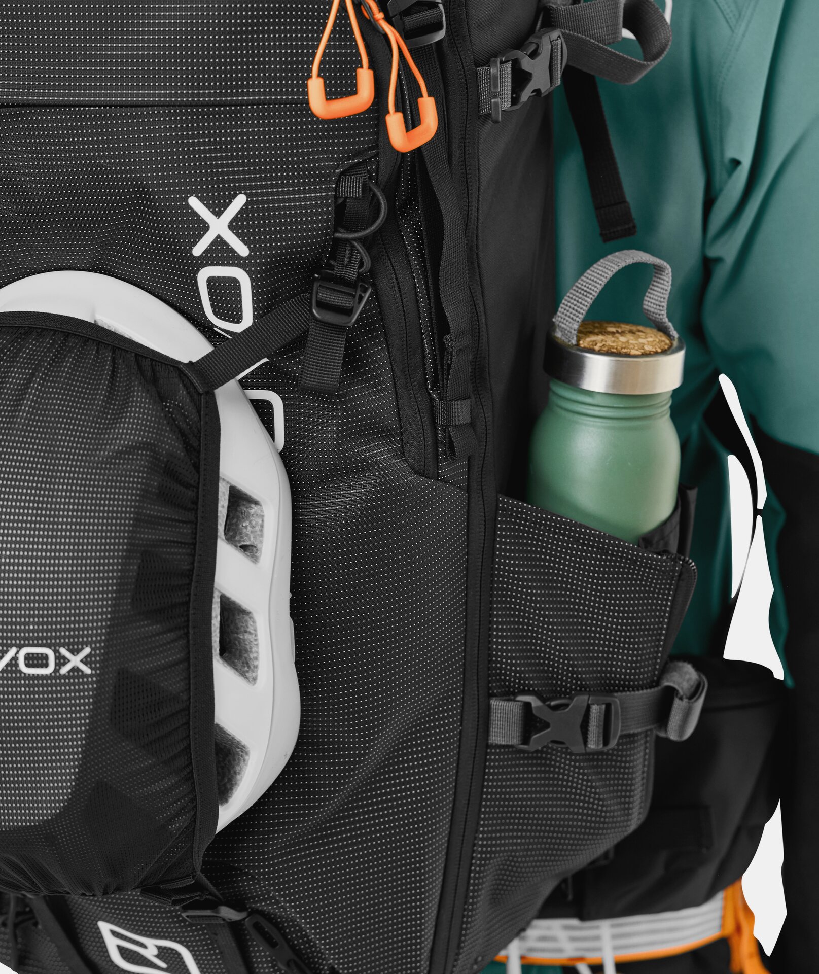 Ortovox Peak 35L er laget for de alpine turene. Sekken er utrolig robust takket være bruken av det ekstremt slitesterke materialet Nylon 420N Manstar. De brede, polstrede skulderstroppene og hoftebeltet fordeler vekten i sekken jevnt mellom skuldrene og hoftene, og sikrer meget god bærekomfort. Peak 35L har glidelås foran som gir deg direkte tilgang til hovedrommet. I tillegg finner man et eget sikkerhetsrom, festemuligheter for tau, isøks, stegjern, ski og snowboard.